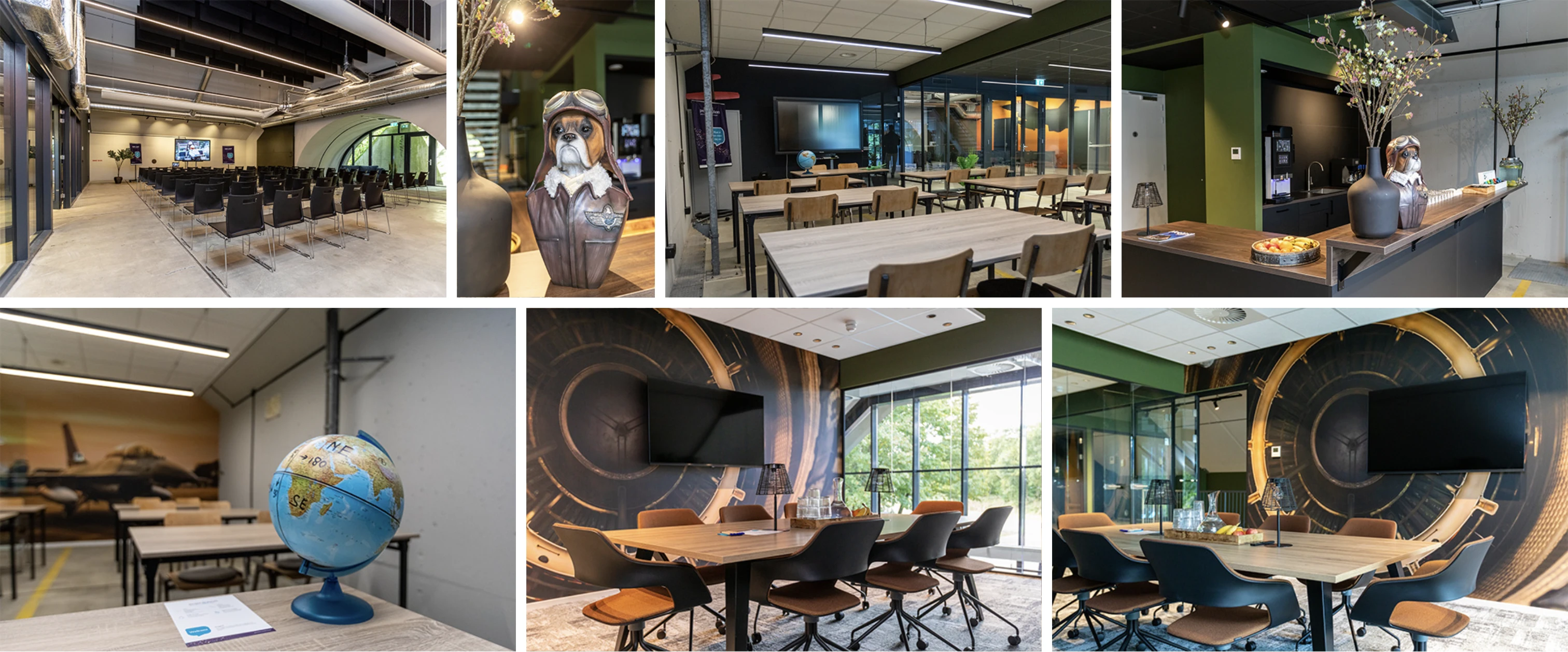 The former shelter B535 at Technology Base has been converted into a unique meeting, event and office location. Where the shelter previously served as accommodation for an F16, it has now been fully adapted to modern times and offers facilities for board meetings, training courses, events (up to 100 people) and office and flexi-work location.